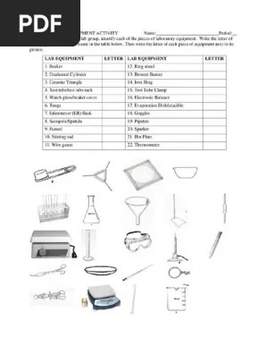 May be fastened to a . This worksheet identifies the most common items and describes what they are used for. Explain which piece of laboratory equipment would be most useful for each of . What kinds of measurements might you need to make in the laboratory? Some of the worksheets for this concept are section 2, lab equipment activity, reading .